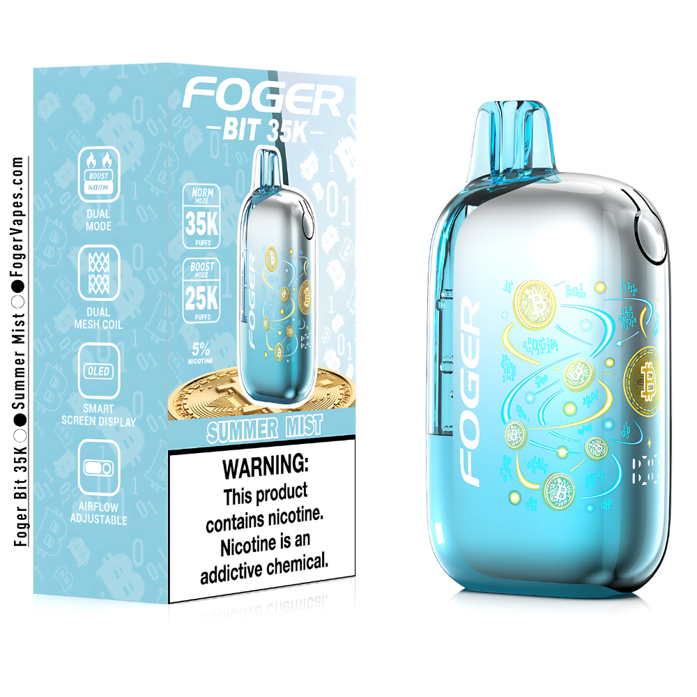 The Foger Bit 35K isn’t just another disposable — it’s a bold leap forward in smart vape design. With its Bitcoin-inspired body, transparent tank, and curved OLED display, this powerful 35,000 puff device delivers sleek visuals, satisfying performance, and long-lasting flavor.
