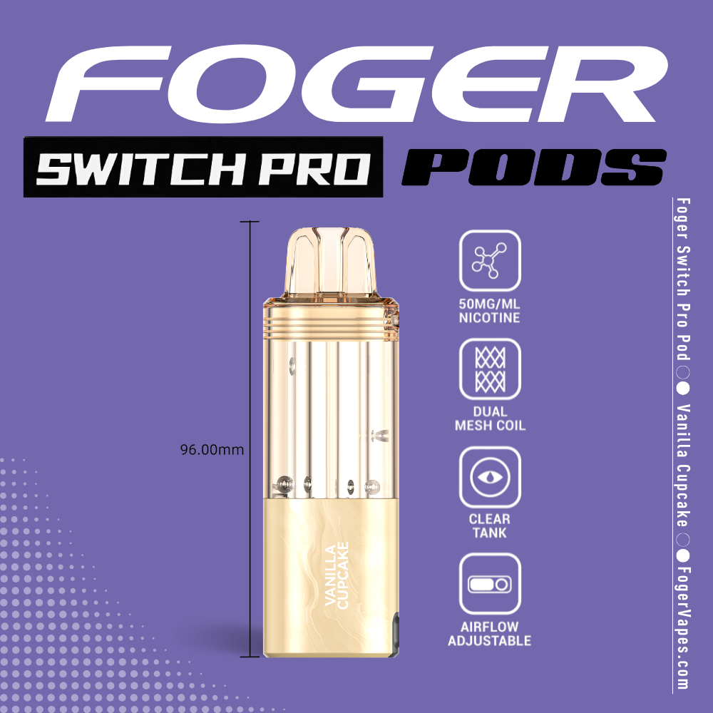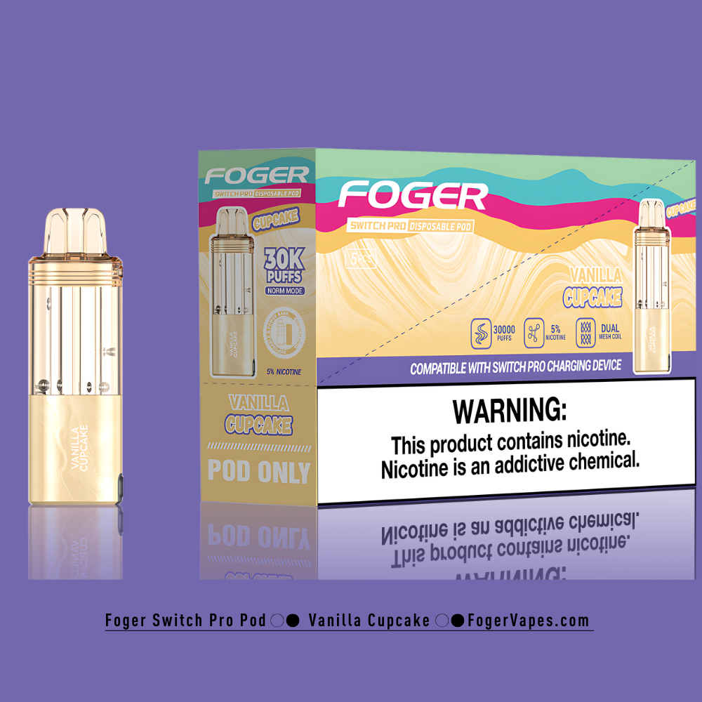 • 1 × Vanilla Cupcake Foger Switch Pro Pod (pre-filled)
